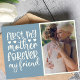 Det här kortet har citatet 'Först min mamma, för alltid min vän' i ett stilrent dekorativt beige skrivstil mot en stilren blå bakgrund. Personliggör genom att lägga till ett foto av din favorit mamma. Meddelandet inuti kortet lyder "Du är den bästa mamman i världen, och jag är tacksam för dig varje dag." Anpassa genom att lägga till ditt/dina namn och/eller ändra eller redigera meddelandet. Typsnitt och bakgrundsfärger är helt anpassningsbara när du redigerar med hjälp av Designverktyget.