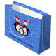 Den redigerbara texten på denna pulverblåa presentpåse är " LYCKLIG FÖRSTA CHRISTMAS " på ena sidan, " JOHNSONS " på den andra. Utformningen har en spridning av snöflingor, och en söt penguin familj som bär stripade sjalar och festhattar. Ändra texten så att den passar alla tillfälle: en vinterfödelsedag, en babydusch, välkomna till ditt nya hem, till exempel.
