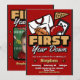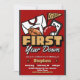 Fira din lilla MVP:s stora dag med denna roliga fotbollstematiserade "First Year Down"-inbjudan! Perfekt för din lilla pojkes första födelsedagskalas, har denna sportiga design ett rött och guld färgschema med fotbollstut och hjälm, och en spelplan för den riktiga matchkänslan.