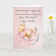Kortets framsida har en mjuk, eterisk fjäril som vilar försiktigt på ett blomande rosa ros. Den ömtåliga pastellhuven och rons rosa toner tillsammans för att symbolisera en älskad vänds bestående nåd och omhuldade minne. Den här scenen och elegantens bilder förmedlar en känsla av fred och reflektion, som fångar det väsentliga i en mild och kärleksfull hågkomst.