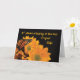 Efter att någon hustru har gått bort kan den 1:a årsdagen vara en svår tid. Låt honom veta att du bryr dig om och minns när han går igenom denna tid. En fjäril ses på ljusa gyllene solrosor som ger glädje, omsorg och hopp med kortet.