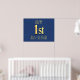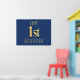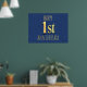 Konstruktion för första årsjubileet över en blå läderbakgrund.