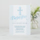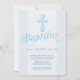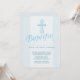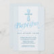 En blå och vit baptisminbjudan med dekorativt kor och ord i kalligrafi. (Pix). <br/>() Kortet är enkelt att anpassa med din text, ditt teckensnitt, ditt teckensnitt, färg och ditt val av sex pappra typer.<br/>() Inte exakt vad du är tittar för? Alla våra produkter kan vara designad anpassningsbar för att uppfylla dina behov utan kostnad för extra.<br/>() Kontakta oss helt enkelt på askcottonlamb@gmail.com<br/>()<br/>Samordna tillgängliga produkter: