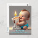Bild skildrar en pojke första födelsedag. Baby har ett tänt ljus och firar sitt första år i livet. Pojken visar ett stort leende. Låt oss gör party så oförglömligt.