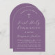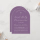 En enkel, modern, bågformad, könsneutral första gemensam inbjudan. Det har bara en vit text om dammig lila bakgrund. I den övre delen finns det ett vitt kor med bågtext ovanför. Tillfälle och namn är skrivna i skript.