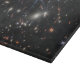Tusentals små galaxer visas över den första Deep Fält-bilden från James Webb Space Telescope JWST. Alla fyra kända typer av galaxer visas: spiral, elliptisk, egendomlig och oregelbunden. Denna akt är offentlig i Förenade Stater eftersom den endast skapades av NASA. NASA:s upphovsrättsprincip stater att "NASA-material skyddas inte av upphovsrätt om det inte noteras".