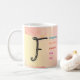 Mugg kommer att vara en favorit för alla från din mormor till din tonårssyster. Med högernas budskap kan ett mugg bli någons skattade följeslagare till komen i åratal. Den här designen har en vacker, handdragen "F" i brev i svart kursiv stil på en fantastisk vattenfärgsbakgrund. Den lämnat sidan visar en varm övertoning mellan gult och rosa, medan högerna visningar en mjuk övertoning mellan rosa och gult. Området kring brev är vibrerande ord i olika färg, inklusive blått, orange, rött, lila och rosa, vilket belyser positiva egenskaper som börjar med brev "". Den övergripande effekten är en visuellt tilltalande och upplyftande design som firar skönheten hos brev "F" och dess egenskaper. Vattenfärgsbakgrunden tillför en smula elegans och sofistikering och skapar den här perfekten för inspiration eller motivation.
