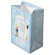 Kommunice Blonde Hair Boy-presentväska som ska presenteras för dina gäster efter ceremonin med ett Blue Damask-mönster. Hela texten kan ändras till kostym enligt dina egna krav. Bild av Zenlagerdedesign & GreatGrafik