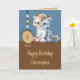 Födelsedag för barn/alla åldrar/första/första/första/födelsedag 1 hälsningskort i dag. Lägg till ett namn och ett meddelande. Ha en underbar dag. Blå och brun, med en söt baby leopard.