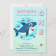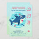 Ett års födelsedag Havsblåhaj i baby, med en retro stil söt liten haj som simmar under vatten med fisk och röda stjärnor. ++++++++++++ Enkel att anpassa med information om namn och party i barn.