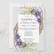 Elegant 1: a födelsedag och baptisminbjudan, med färglöst vattenfärg vår blommor arrangerad i en swoop. Clematis, forsytin, tulpaner, blad och dekorativa blecka.