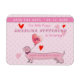 Cute, tecknad, ädel, Dachshund puppy-hund med rosa hjärtballong i kombination med söt ljus rosa - grått-polka punkt mönster. Girly, unik första födelsedag sparar datumet flex magnet.