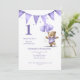 Baby Bear med ballonger 1:a födelsedag-inbjudan. Den här inbjudan finns i blått och lila.