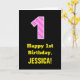 Den här glatta och roligt-matematiska hälsningskortet har ett stort nummer "1" som har en mönster som innehåller skarvade hjärtformer och som är ljus rosa på framsidan och har färgadens rosa för mörk. På framsidan finns också hälsning:s födelsedagsmeddelande "Lycklig 1:a födelsedag" och anpassadets mottagare namn. Insidan innehåller ett hälsning-meddelande från anpassningsbarnas födelsedag, eller kan kanske tas bort och lämnas tomt om ett meddelande ska skrivas för hand i stället. Ett sådant här födelsedagskort i personlig kan vara ett roligt för att skicka ett meddelande i firande om någons första födelsedag. [~Z0000434]