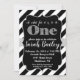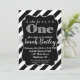 Första födelsedag Svart och Silver Glitter Födelsedagsinbjudan