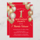 Första födelsedag Svart och Röda Glitter-ballonger Inbjudningar