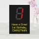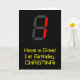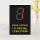 På framsidan av den här roligten och den neridala födelsedagsteckendesignen finns ett stort nummer "1" med en röd digital visning för sju segment som inspirerar till utseendet, tillsammans med meddelandet "Ha en Underbar första födelsedag" och ett eget namn på en svart färgad. Insidan innehåller ett anpassat hälsning-födelsedagsmeddelande eller kan kanske tas bort och lämnas tomt om ett meddelande ska skrivas för hand i stället. Ett sådant här födelsedagskort i anpassningsbarna kan vara ett roligt sätt att skicka önskemål till någon som firar sin första födelsedag. [~Z0000386]