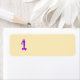 Första födelsedagen. Tecknad i Lila. Returadress Etikett