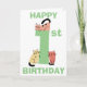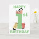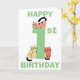Söt, rolig födelsedagspresentkort för förstagångsbarn med en stor etta i grön färg. En klotterkatt sitter ovanpå siffran och två klotterkatter sitter vid basen av siffran, varje katt är unik med en annan färg och i en annan position. Ovanför och under katterna står orden Grattis (överst på kortet) och Födelsedag (längst ner på kortet) i grön text. Inuti kortet hittar du ännu fler söta katter med en mall för att lägga till ditt födelsedagsmeddelande och slutligen ytterligare en klotterkatt på baksidan av kortet.