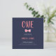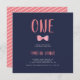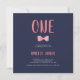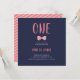 Ett modernt första födelsedagsfest inbjudan för din lilla flicka i marinen, korallens rosa, med en vattenfärgskur, ett penselerat typsnitt och diagonalt rand mönster på motsatt sida.