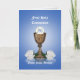 Bild- och illustrationsdisposition för guld-chalice på Blue med vit ros och text för barnets första Heliga-inbjudan till Communion-part