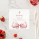 En vit bakgrund färg. Dekorerad med stor rosa och en gyllene kor. Anpassa och lägg till namn, datum och text.