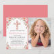Första heliga kommunion flicka blomkors foto inbjudningar