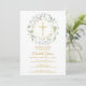 En dekorativ grönskegirlangd och guldkors sitter ovanför din speciella första heliga kommunion inbjudan information på denna eleganta design.