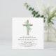 Grön salvia Pojke Eukalyptus och Kors Botanisk Grönska Vattenfärg Religiösa Första (1:a) Heliga Kommunion Inbjudningar.