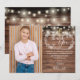 Anpassa med ditt foto och speciellt tackmeddelande för första heliga kommunion i chic bokstavering på denna eleganta rustika design med fina strängljus och handritad bladgarland på en träpanelbakgrund. Designad av Thisisnotme©