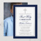 Elegant Blue och Silver Första Heligans inbjudan till kommissionen med Kor. Biljett Stil. Foto bakåt.