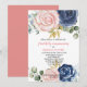 Den här eleganten inbjuder den gemensamma heligan visningar till blommigtens marinblå och rosa, guld kor och rosa. Du kan också kombinera med matchande kontorsmaterial och samordna pappra varor som ska levereras med. Napkins, tallrikar, tack kort och mycket mer. Se Tunga blå/ rosa temainsamling. Allt du behöver för att skapa en elegant-händelse.