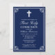Första Heligans gemenskapskort för inbjudningar med vackra Kor och regalvävda ram. Kortets typografi har en blandning av elegant och modern text i vitt på en djup marin blå bakgrund. På baksidan av kortet finns också Kor och vävt ram på marint blått. Finns i högkvalitativ utskrift eller hämtningsbar och erbjuder ett snabbt digitalt nedladdningsformat för SMS, e-post eller social-mediainlägg.