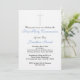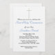 Elegant First Heliga Communion Son med enkelt handmålat silver kor med guld accents mot skarp vit bakgrund. Kommunix och Barnets Namn är skrivet i kornblomsblått skript. Anpassa Barns första och Mittet Namn eller Första Namn. Infoga datum och detaljer i svart text. Baksidan har bilden av kor och Guds underordnad i silver. Originalteckning och design © 2018 TamiraZDewards.