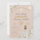 Den häpnadsväckande första Heligans inbjudningar till kommunal blommigt med rustik, vintage inspirerade inslag med en flicka i traditionell vit klänning, mot en mjuk svampbeige bakgrund. Baksidan av inbjudan har en boho stil kor med vattenfärgade blommor och grönska. Byt ut "Första Heligans gemenskap" mot "Christening" eller "Baptism", beroende på vilket kostym som är ert speciella evenemang.