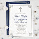 Första Heligans inbjudningskort från gemenskapen med Kor och vackra vävt ram i skuggor av silver färg. Kortets typografi innehåller en kombination av elegant och modern minimalistisk text i skuggor av silver grått och marint blått. Kortets framsida är vit medan baksidan är marin blå med Kor och ram. Finns i högkvalitativ utskrift eller hämtningsbar och erbjuder ett snabbt digitalt nedladdningsformat för SMS, e-post eller social-mediainlägg.