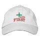 Hattar: Klassiskt basebolllock med texten "FÖRSTA STÖDET" för första hjälparbetare, hjälppersonal, evenemangsarrangörer, medicinsk personal