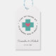 Den här återställningspaketets favärde-taggen har en stor akvastödsymbol plus (+)-symbol med ett hjärta i mitten. I meddelandet står det "Cabo Recovery Kit" (kabinåterställningspaket) ・ Vid sjukdom och i hälsa kan du anpassa dig med namnen från bruden och brudgummen. Den här designen är perfekt för ett destinationsbröllop och koordinerar med de andra produkterna i Cabo San Lucas. El Arco Destination Wedding Collection.