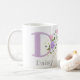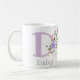Konstruktionen har Monogram & Namn med blommor på båda sidor i vatten färg pastel stil. Initial är brev D. Gift för Daisy. Mugg med namn-Daisyn.