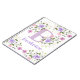 Designen har monogram och namn med blommor på vardera sida i en pastellfärgad akvarellstil. Initialen är bokstaven B. Beatrice