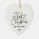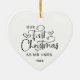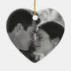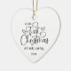 Cute First jul som Mr & Mrs Photo jul Hjärtformad keramisk prydnad. Det här trendiget och den söta prydnadsfärgen har en vacker kalligrafi i ett modernt svartvitt färg. Anpassa med ett år på utsmyckningens framsida och lägg till ett speciellt foto på utsmyckningens baksida. © Kimbelled, LLC