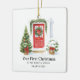 En vit, rund keramisk prydnadsprodukt med en mjuk, vattenfärgad ytterdörr med krans, krökta evergreener och varma lyktor. På den stora rubriken står "FÖRSTA CHRISTMAS AT" med linjer på gatan, namn och året. Den skonsamma paletten med grönt kostym är vilken träd som helst och gör en tankfull förstahandskipsaké eller hemmauppvärmningsgåva. Uppdatera adress, lägg till namn och ställ in året för ett tidslöst biet som du kommer att vänta varje december.