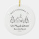 Fira ett nytt kapitel med en ren, vit, rund keramisk prydnadsprodukt med en minimalistisk linje mellan gräs och teckning och fallande snö. Den stora rubriken lyder "FÖRSTA CHRISTMAS AT", med utrymme nedanför adress, namn och år. Den enkla svartvita designen kostym är vilken décor som helst och gör en perfekt till förstahandsbesökare eller helgdagar för hushållsuppvärmning. Uppdatera adress, lägg till namn, ställ in år och lägg på en tidslassepåminnelse om var din berättelse började.