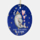 Första jul som en mamma-prydnad med en illustration av mor och baby-val. Personlig med året och baby namn samt födelsedatum. Den innehåller stjärnor och en blå nattbakgrund i himmel. Om du vill ändra färgen eller typsnittet för texten klickar du på knappen för att redigera designen.
