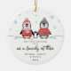 Gratulera till familjens speciella milstolpe med denna berömvärda första jul som en familj av tre prydnadsföremål. Med två föräldrapenguiner i mysiga vinterhalsdukar och hattar, som håller baby-penguin mellan dem, är detta nyckelspel det perfekt sättet att markera din första julhelg tillsammans. Den glädjande snöscenen och den lekande illustrationen gör den till en underbar gåva för nya föräldrar, par med nyfödda, eller familjer som välkomnar deras lilla år 2025. Anpassa med namn och datum för att skapa ett högt arv som kommer att ligga på träd år efter år. Gör helgdag minnesvärt med den här vackra julprydnaden som är lika söt som festlig.