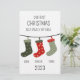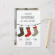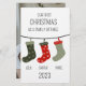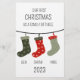 Julens utformning som en familj av tre med färgfulla julstrumpor med familjemedlemmarnas namn. Det är en underbar gåva att minnas vackra familjestunder. Du kan enkelt ändra bakgrunden till färg. Det är enkelt att anpassa det genom att ändra namn/datum/text osv.