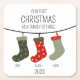 Julens utformning som en familj av tre med färgfulla julstrumpor med familjemedlemmarnas namn. Det är en underbar gåva att minnas vackra familjestunder. Du kan enkelt ändra bakgrunden till färg. Det är enkelt att anpassa det genom att ändra namn/datum/text osv.