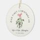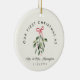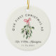 Fira vår första jul som Mr & Mrs med den här elegant bröllop fotokeramiska prydnaden! Med ditt favoritfoto från bröllop och en modern mistletoillustration tillför den här prydnadsfiguren en romantisk beröring till din helgdag-dekoration. Det är ett vackert nöje att minnas din första julhelg som nygifta, perfekt för träd eller som en hjärtlig gåva för vänner och familj att fira sin första jul som gifta par.