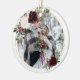 Skölj dina första minnen tillsammans med denna vackra julprydnad. Elegantens utformning har namn i ett modernt skriptteckensnitt med ramar i en guld-geometrisk krans med vattenfärgade blommigtar och eukalyptus och gräs greenery. Baksidan återgår till ditt favoritfoto. Detta prydnadsämne kommer att vara en viktig anledning att uppskatta för evigt.