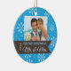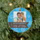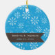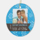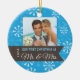 Julgran har en blå bakgrund med vit snöflingor och fotot ram för ditt foto på de nya lywederna. En brun banderoll innehåller formuleringen: Vår första jul som Mr. och Mrs. The Backside har samma banderoll och samma anpassade för briden & groomens datum namn och bröllop.